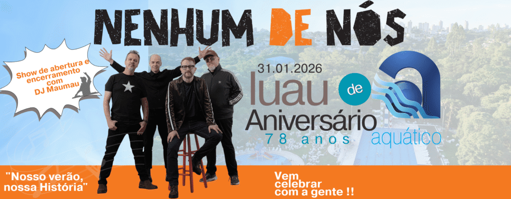 31/01/2026 – Uma noite especial para celebrar o aniversário do clube no Luau Aquático, com show da consagrada banda gaúcha Nenhum de Nós 🌙🎸.